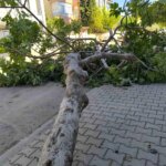 Adıyaman merkez Siteler Mahallesi'nde, şiddetli rüzgar nedeniyle bir incir ağacı kaldırım üzerine devrildi. Olayda...