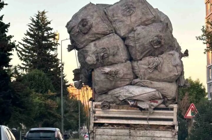 Adıyaman merkez Atatürk Bulvarı'nda, taşıma kapasitesinin çok üzerinde yükle seyreden bir kamyonet, trafikte telaş...