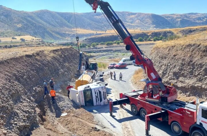 Adıyaman'da şoförünün direksiyon hakimiyetini kaybetmesi sonucu devrilen hafriyat yüklü kamyonda 1 kişi yaralandı. Yaralı...